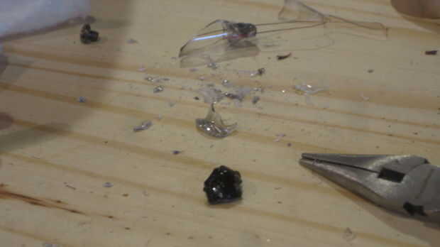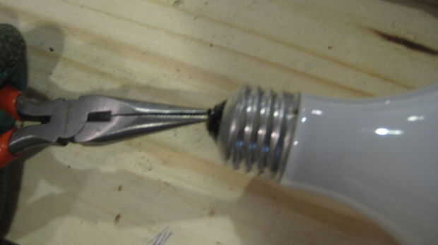 En la parte inferior de la lámpara de luz debería ver un pequeño trozo negro con algún metal en la punta. Este metal puede ser pelado apagado con los alicates. Ahora la pieza negra puede ser agrietada apagado. Está bien si sale la pieza de metal. Con sus pinzas o un destornillador, limpiar el interior de la bombilla. Consiste en un vidrio y el filamento. Que tenga que romper algunos cables o incluso el cristal para ello. Ten cuidado. Después de que los componentes están fuera, tome el bulbo a un fregadero y enjuagar con agua. Debería ver la capa blanca en el interior salen. Felicitaciones, ahora tienes una bombilla vacía.