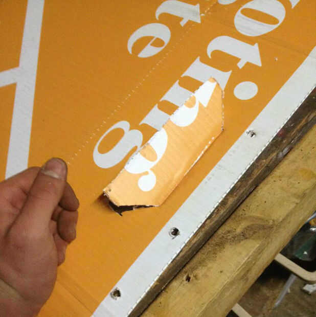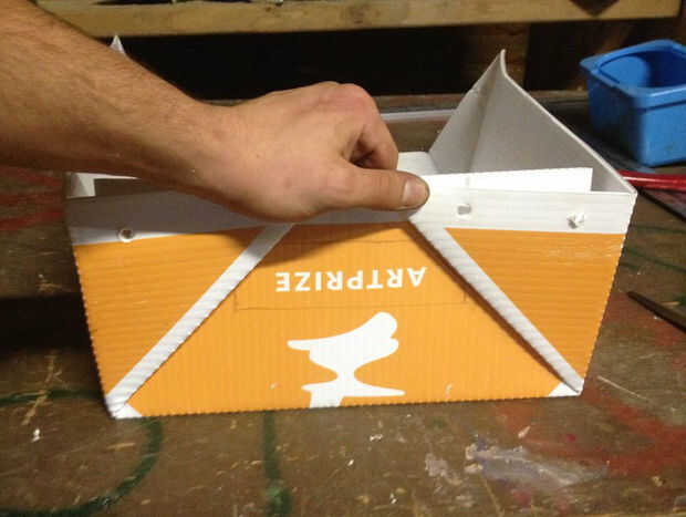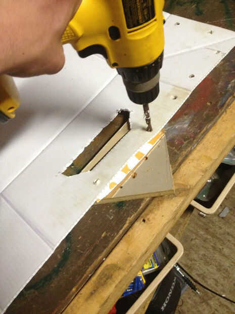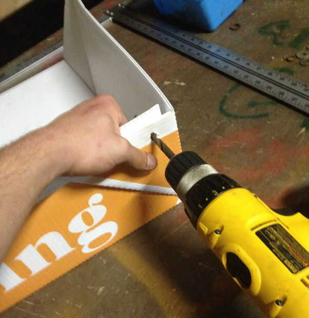 2. Perfore 4 orificios de 3/4 de pulgada hacia abajo desde la parte superior de cada lado, espaciarlos dos agujeros son en cada triángulo en la esquina.