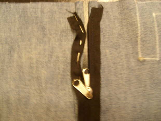 Doblar la parte superior de la tela dos veces hacia el interior. (esto es por lo que no hay hilos sueltos en la cremallera) Hacer ambos lados de la caja de lápiz.