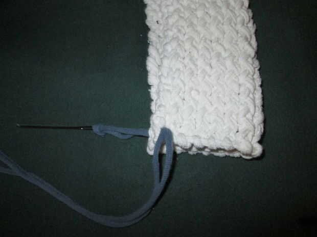 Primero, usted necesitará hacer una ficha técnica de punto de la camiseta. Haz algunos hilados de camiseta y utilizar un telar que hace punto circular para hacer una hoja. A ver cómo hacer hilado de camiseta y encontrará un montón de instrucciones en esto. Simplemente corte los bucles de mi camiseta sin costuras laterales y enrolle juntos en una cadena. pero si solo desea utilizar regulares hilados de camiseta que está bien.