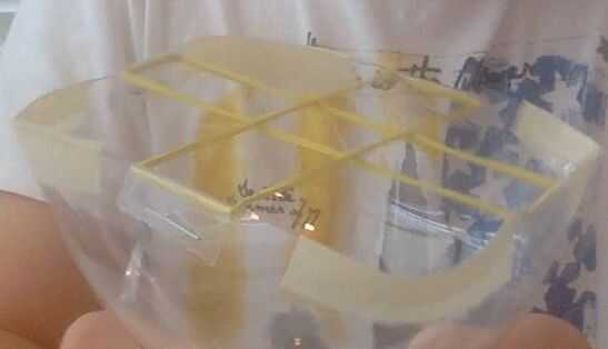 Para hacer los dedos seguro, con cinta adhesiva los bordes de la botella.