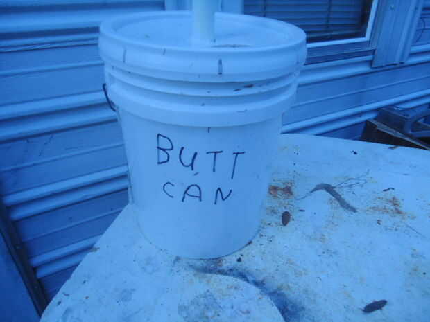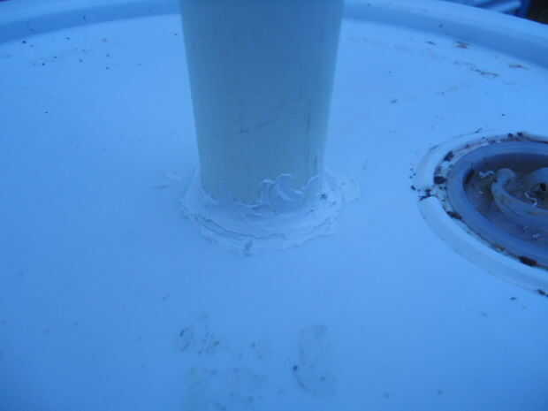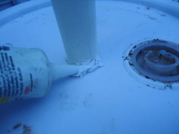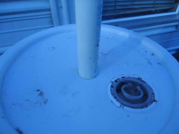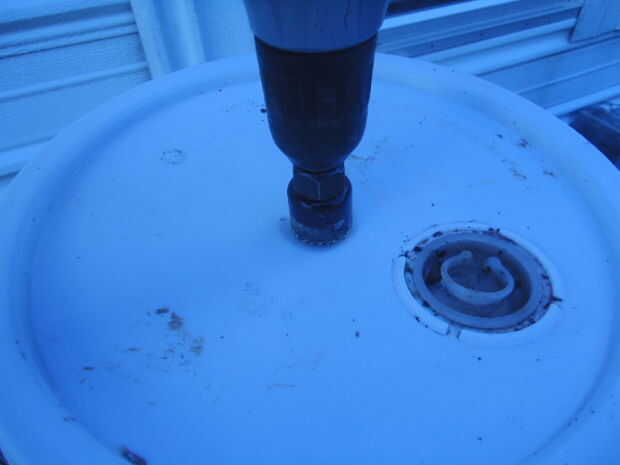 1. corte un orificio de 1" en el centro de la tapa del cubo y la parte superior