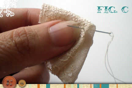 Doblar el círculo por la mitad otra vez y coser lanzó el punto del círculo doblado (fig. C).