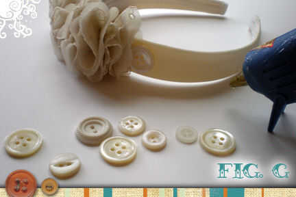 Adornan la diadema con botones, este paso es opcional (fig. G).