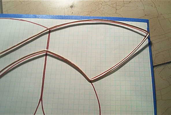 2 - 7 curva, curva, curva. Tiempo a colar los dedos! Observe cómo utilizar el plan para hacer las curvas. Constantemente Coloque el cable en el plan para asegurar que va bien. Ahora no vamos a ser la perfección aquí, un poco dar y recibir aquí y allá es bastante aceptable, solo trate de simétrica.