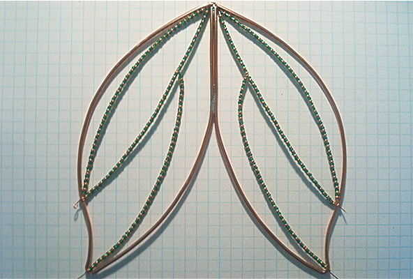 Mi consejo es para cuentas de cadena en una pieza realmente larga y cortarlo poco a poco para adaptarse a lo que usted necesita. Simplemente porque conseguir las cuentas y es un dolor, siempre pierdes algunos. Utilicé cable sólido para mis granos. Es pequeño, pero suficientemente sólido para mantener su forma.