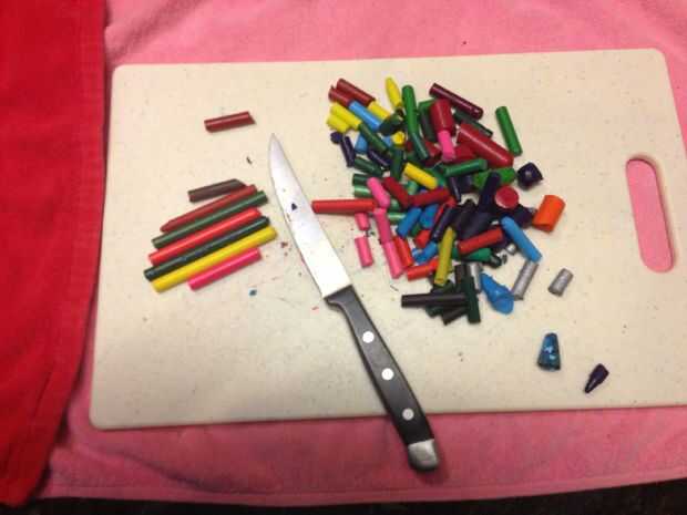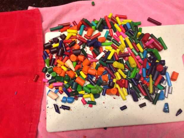 Permite que los pedazos más pequeños para la mezcla más de las ceras nuevas que está creando. Podría romper las ceras, pero puesto que trabajábamos con unos cuantos lápices de colores, he optado por tener mi un reloj poco mientras que hice algunos para picar.
