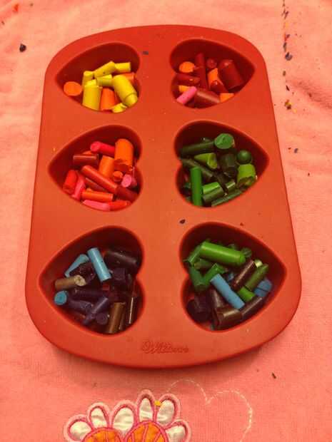 Teníamos un molde de silicona y un molde de lata con forma de muffin y usted no tiene que preocuparse acerca de los moldes de engrase porque serán sólo los lápices de colores pop out cuando haya enfriado. Probablemente usted querrá prestar mucha atención a que lápices de colores mezclan para no mezclan los colores hacia un marrón fangoso. Hemos intentado seguir complementando colores uno con el otro (como el rosa, naranja y rojo) incluso que si lo todos se mezclan, por lo menos tendría una variedad de tonos.