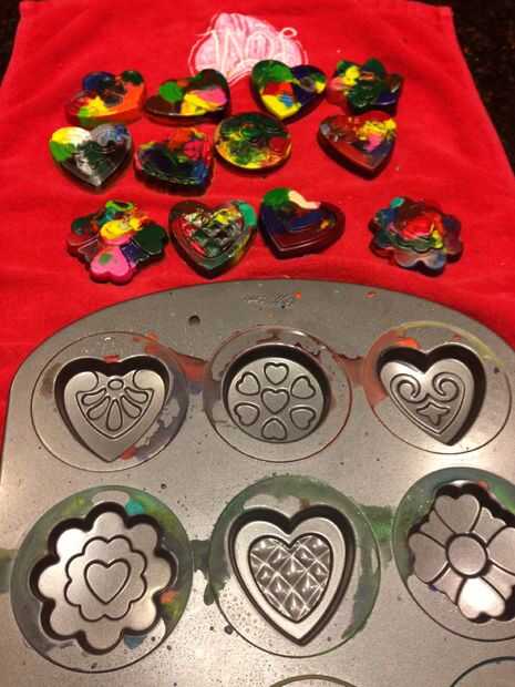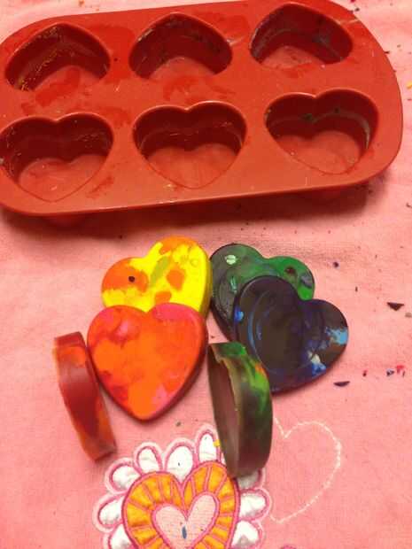 Se han endurecido por los lápices de colores, solo una vez los moldes encima y estallar hacia fuera de las ceras. Para el molde de plata, sólo caen a fuera. Para el molde de silicona, tendrás que empujar realmente las crayones fuera, pero que no se peguen. Cuando lo hacemos otra vez, probablemente va justo pegado a las latas del metal solo porque era más fácil conseguir las crayones hacia fuera y en las manos de mi hija.