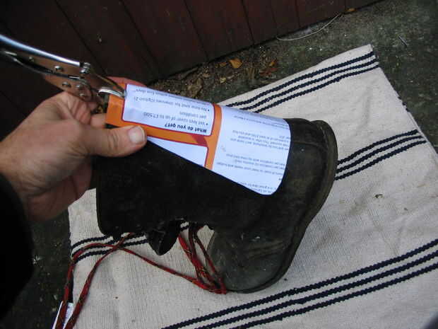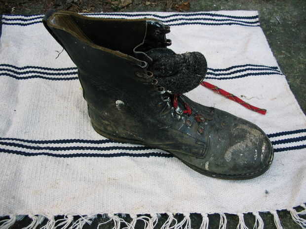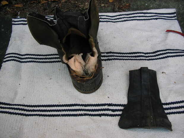 Las imágenes cuentan la historia; El arranque fue una vieja bota de paracaidista alemán con el único que falta, pero creo que cualquier boot viejo va a hacer como el cuero sigue siendo bueno y el maletero es bastante grande.