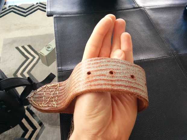 - Sugiero mantener la correa en la moda y la longitud aproximada, que serán sumado más tarde. Ahora deslice su mano a través, mantenga su mano en una posición abierta relajada. Ahora trato de volver a sacar la correa, si fácilmente se desliza hacia atrás fuera probablemente debe hacer que el lazo un poco más pequeño.