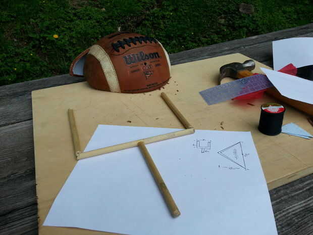 Cortar la varilla de pasador en tres 6" y 8" uno piezas. La sección 8" se utilizará como el travesaño con 6" piezas como el apoyo, así como los mensajes de izquierda y derecha. Construí la base de pinzas para la ropa pero se puede hacer cualquier forma como se encuentra. Pegar las piezas como se muestra arriba entonces la mancha o pintura para un look vintage.