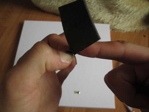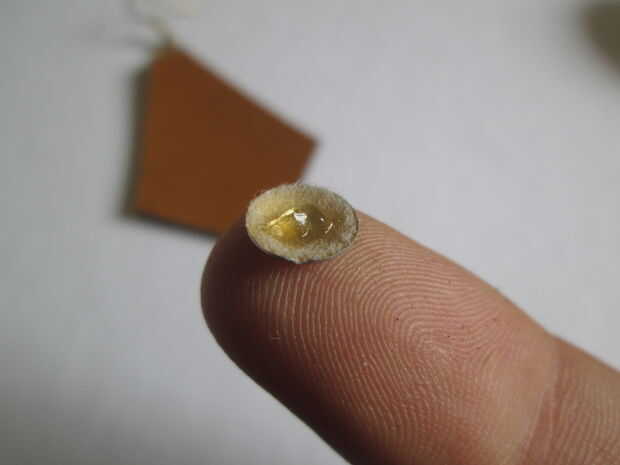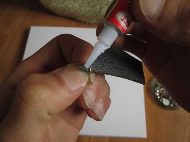 Fijar postes de madera es un poco más complicado. Estoy usando pegamento en una jalea para eso. Primero mezclamos agua con azúcar, que ayudará a la Yeguada pegarse a los dedos, luego poner una gota de pegamento dentro y poco a poco pégala al cuero.