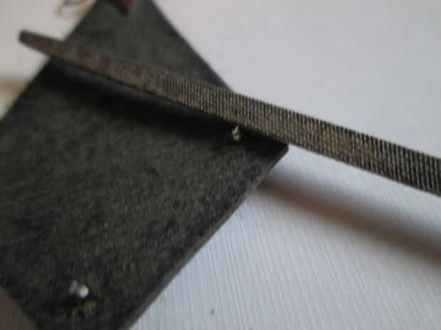 Luego lo archivo por seguridad. Y finalmente una gota de pegamento para mantenerlas en su lugar.