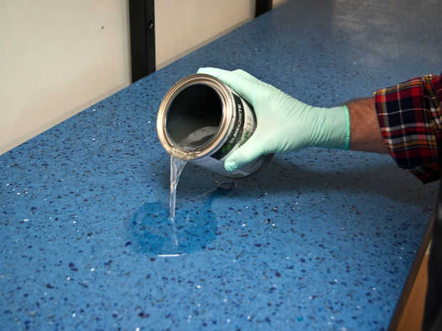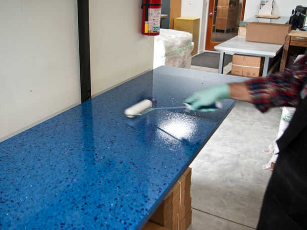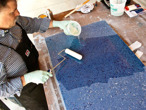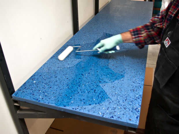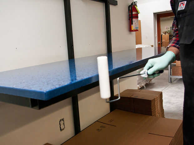 - Extender el sellador con un rodillo de espuma de alta densidad, trabajando el sellador en la superficie, que cubre el mostrador todo en una capa uniforme.