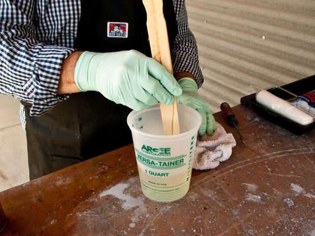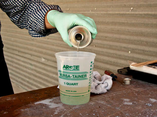 - Mezcle 4,5 onzas de la parte A con 1,5 onza de la parte B (proporción 3:1).