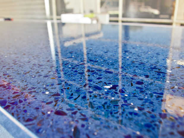 Para lograr el color más audaz posible vamos a sellar esta sección de la encimera de vidrio reciclado con un color de alto brillo mejora de sellador. Que aplicaremos dos capas de sellador de PC12 Surecrete que le proporcionan un rendimiento y una protección adecuada.