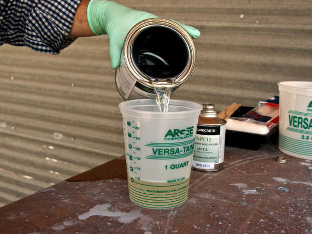 - Mezcla de 6 onzas de sellador utilizando 4,5 onzas de la parte A y 1,5 onzas de la parte B (proporción 3:1).