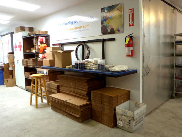 Esta cubierta ha sido utilizado por algunos meses y la mayoría del producto que se envía fuera de nuestra oficina en Berkeley pasa a través de esta superficie. Debido al uso pesado, el sellador ha perdido su brillo original y tiene algunos rasguños, pero todavía se mantiene bien.