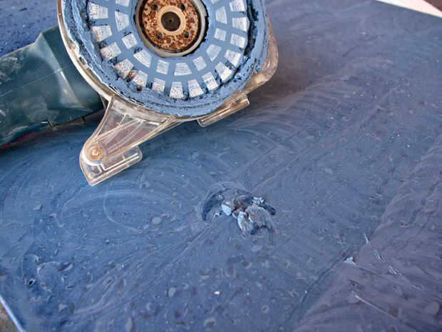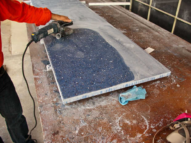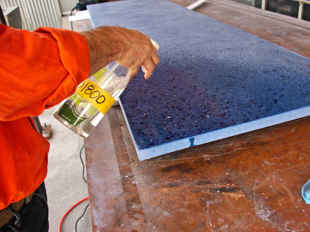 - Continuar el pulido y la superficie con la dilución de LD1800 la bruma hasta la encimera entera ha sido pulida y se llenan todas las bolsas de aire.