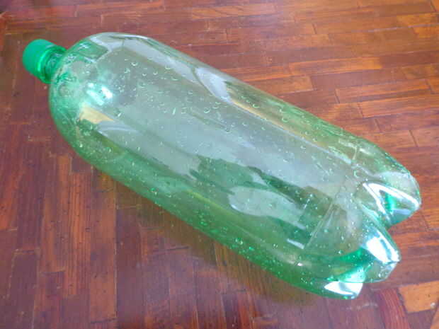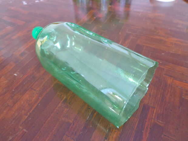 Luego, corte la parte inferior, asegurándose de dejar al resto de la botella tan larga como sea posible.