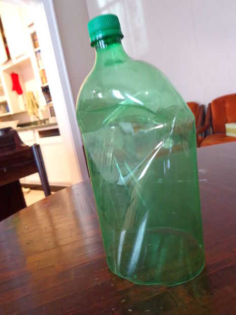 Doble los 2 litros en la parte superior donde la curva superior se vuelve hacia los lados rectos de la botella, como se muestra en las fotos.