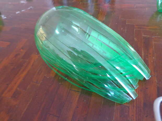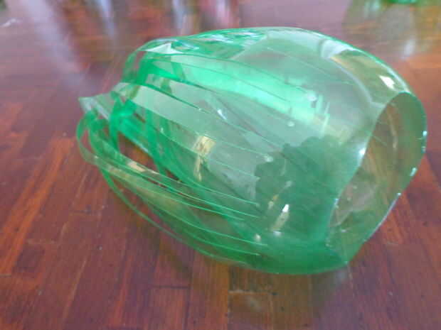 Cortan las rajas en la botella de Mtn dew 1/4"- 1/2" todo el camino alrededor de la botella va todo el camino hasta el pliegue
