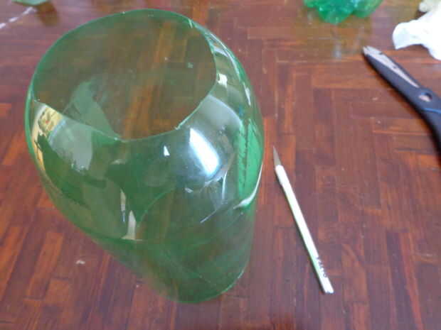 A 1-2 pulgadas de la tapa, cortar la parte superior de la botella.
