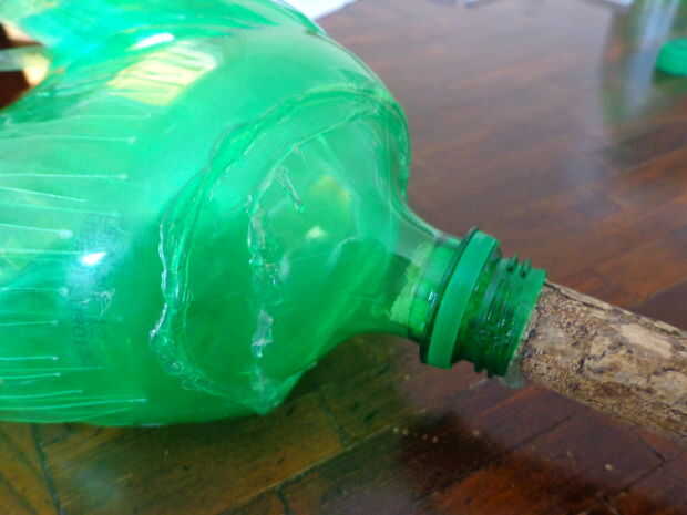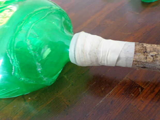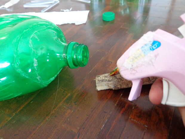 Envolver la conexión con cinta de enmascarar, ocultar las partes de botella evidentes.