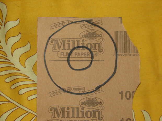 La técnica utilizada para cortar la plantilla de papel de lija es simple. En primer lugar, use usted brújula para encontrar el juntar desde el centro hasta el borde del plato.