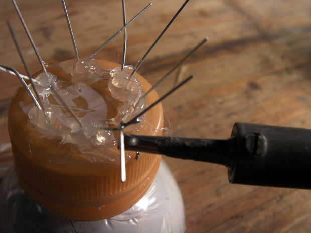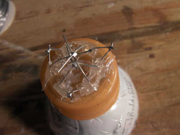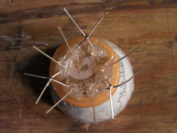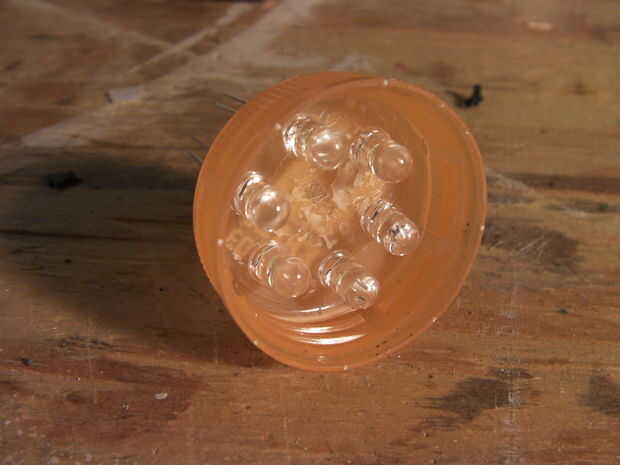 This is the most important part of the flashlight. Si lío hasta que no se enciende... BUM BUM BUMMMMM!!!!!! Basta con mirar las fotos muy de cerca y si no estás seguro de algo. Usted necesita pegamento pistola soldador, 6 o 10 LED y la parte superior de la botella de gatorade otra vez.