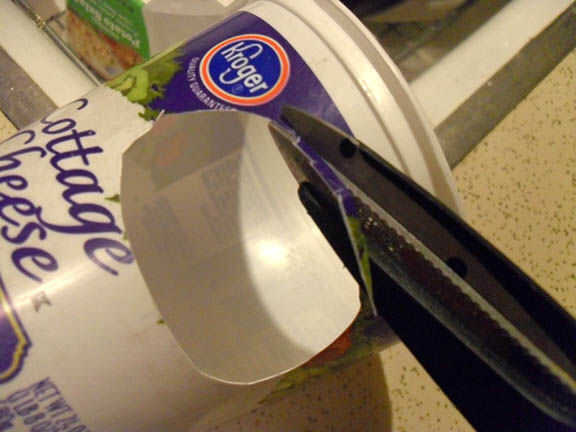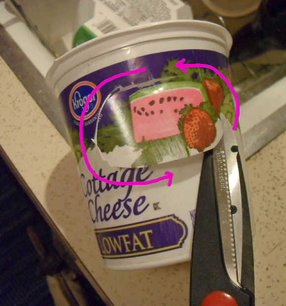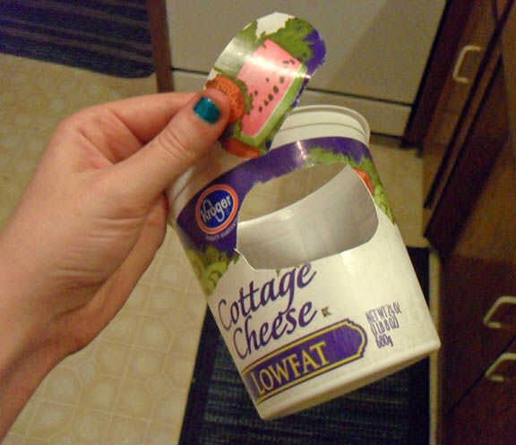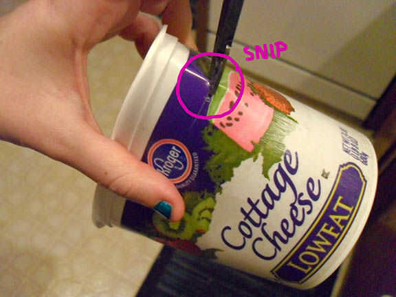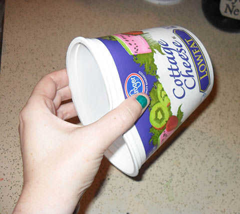 Apriete su envase de requesón hasta que llega a ser oblonga.