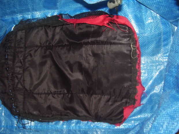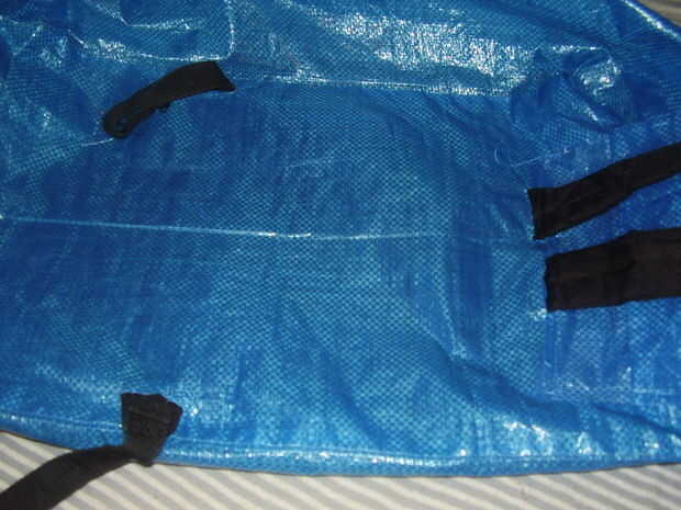 2) deshacer las manijas y colocar la mochila en la parte inferior de la bolsa de ikea, el mango hacia abajo.