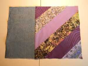 Coloque bolsillo adornado en parte inferior de la tira de mezclilla. Asegúrese de dejar espacio para margen de costura en el borde exterior.