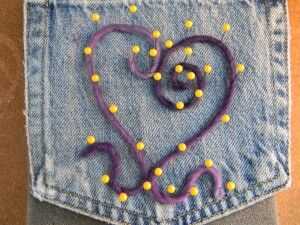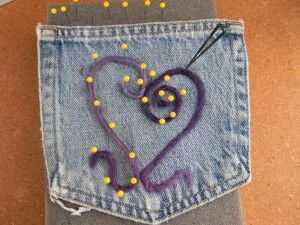 Celebró dos agujas en un momento y me quita los pasadores como asomó las agujas de fieltrar a través el hilo para sujetar a la mezclilla. Cuando termines, suave rasguño en hilo para asegurarse de que no fácilmente sube desde el bolsillo del dril de algodón. Si lo hace, basta con aguja de fieltro un poco más. Creo que es tan cool como estas agujas sólo tiran de las fibras de lana en la tela para garantizar:)
