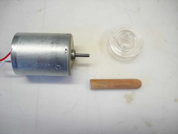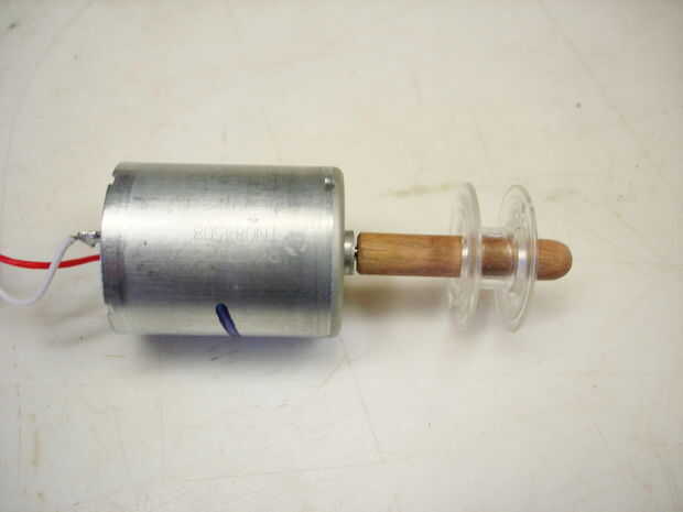 Perfore un agujero en el extremo plano un poco más pequeño en diámetro como el eje del motor.