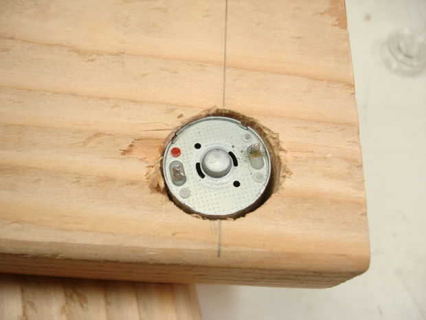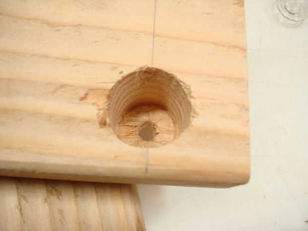 Perforó un agujero en un pedazo de madera del tamaño del motor parcialmente a través. Luego perforar un agujero más pequeño para el eje.