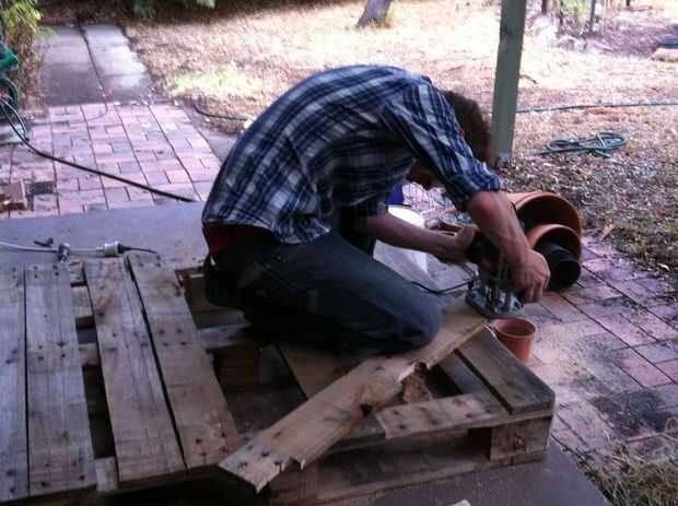 Cortar las tablas de repuesto a la forma para que los puedas usar como 'estantes' en que van a quedar las macetas. Usé una fresadora y una sierra de calar para esto. Ponerlos en su lugar. Si son un ajuste apretado un poco, utilizar un mazo para ponernos en situación. Ahora perforar y atornillar cada junta en varios lugares frente a sostenerla bien.