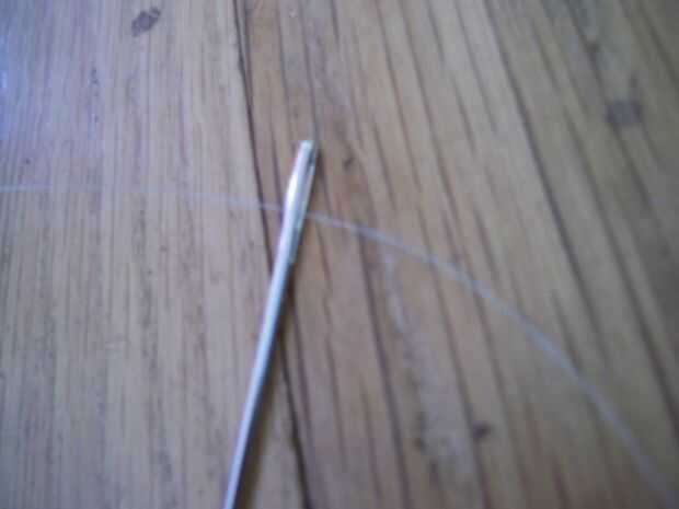 Este paso es bastante auto explicativos. Enhebrar la aguja con la tanza...