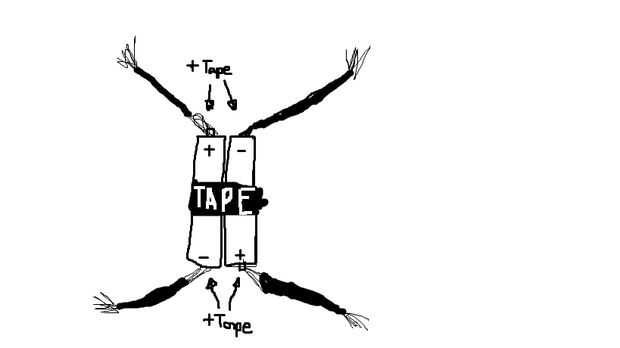 1) juntar las dos pilas con aislante de derecho de la cinta en el medio para facilitar futuros pasos.