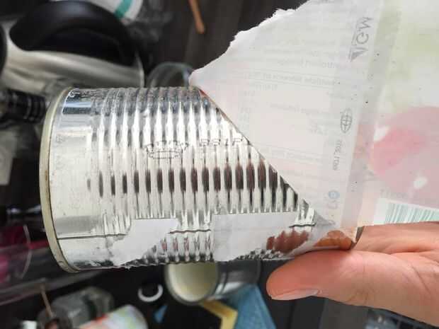 Limpie su poder desde el interior y despegue el papel en el exterior. Podría ayudar a mojar fuera a resolver algunos de la cola.