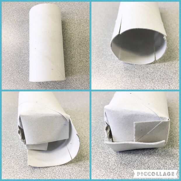Tomar un rollo de papel higiénico y hacer 4 cortes incluso en un lado. Cada uno de estos lados en doble sobre la otra y presione hacia arriba.