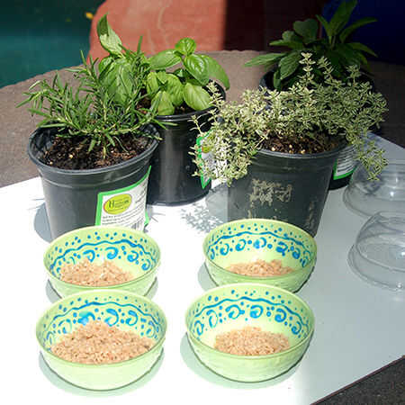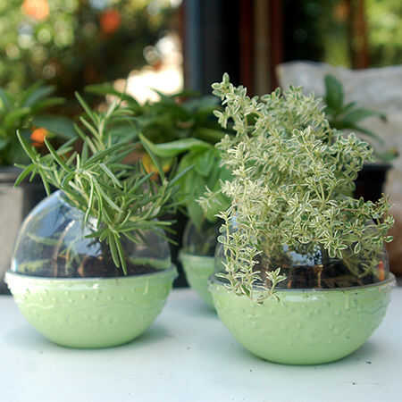 Sólo permite que el tamaño de los envases de plástico para plantas o hierbas pequeñas o suculentas, pero se puede utilizar para comenzar su jardín de hierbas de la cocina y luego mover al aire libre cuando consiguen demasiado grandes. Tenga cuidado de no ponerlas en sol directo por mucho tiempo y agua con cantidades pequeñas sobre una base regular para prevenir la inundación de las raíces.
