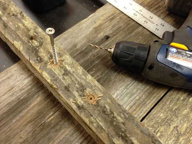 Me preocupaba la madera partir así que taladrar agujeros piloto y luego atornillar los listones a los postes.