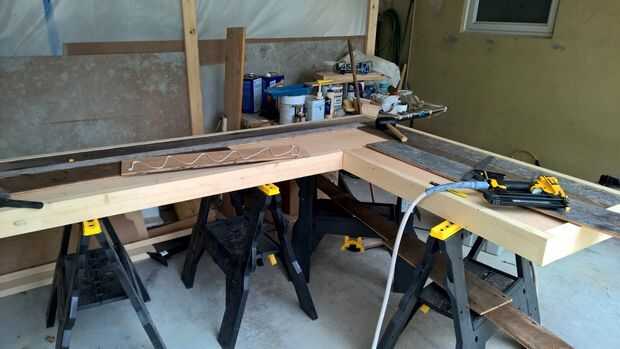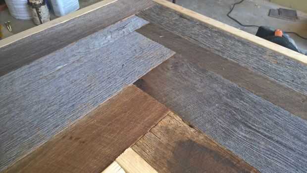 No tengo ninguna madera a utilizar, así que fui a un lugar de madera local y habló con ellos sobre lo que quería hacer. Sugirió utilizar la vieja madera del granero y tiene molino 3/8 de pulgada de espesor y hacer tiras que son tres, cinco y siete pulgadas de ancho. Una rápida gritar a la gente buena de madera antigua de la Florida - muy amable, sugirió el diseño de la disposición y hasta hizo un dibujo para mí!