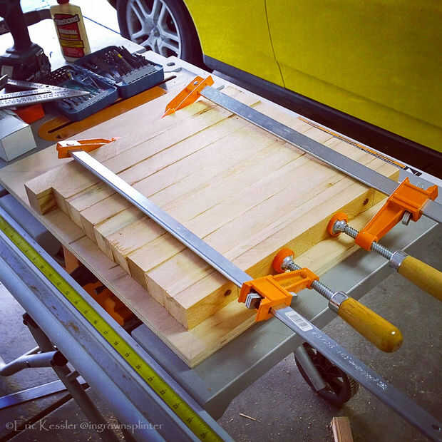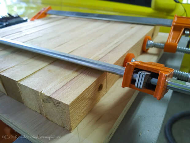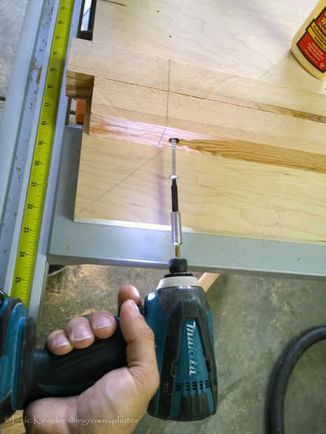 Aquí tomé la culata cuadrada y con tornillos y pegamento sujetados juntos para hacer las tapas de tabla sólida "carnicero bloque-esque".