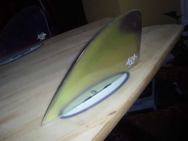 Prefiero un acabado arenado en una tabla de madera - super brillante puede hacer un tablero de madera como de plástico. La arena todo utilizando grano #120 derecha hasta 1500 #. Abrir el tapón del leash, ventilación y finboxes usando una dremel y terminamos!