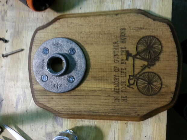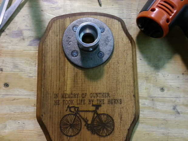 Diseñé este estante de pared simple del montaje de mi bicicleta. Que muestra en las fotos que tengo no monte en la pared, pongo sólo temporalmente en el poste de metal. Como se puede ver la pared son dos agujeros para colocar los tornillos del enchuf