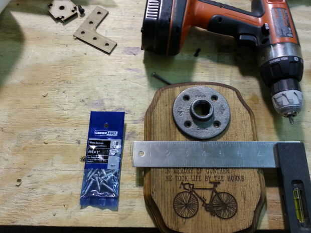 decidí montar encima de mi grabado. En la retrospección esto puede haber sido un error. Me mantuvo distancia de los bordes de la placa y tenía dos tornillos en la parte inferior contra la configuración 1 tornillo porque pensé que sería más seguro. Usé los tornillos para madera 3/4 con la taladradora.  Utilicé estos tornillos en la parte trasera, así... Opté por usar tornillos sobre uñas ya que este es un proyecto del cojinete de peso. Todo manteniendo alineados y ajustados realmente ayuda a mantener más adelante las cosas seguras y nivel en la pared.