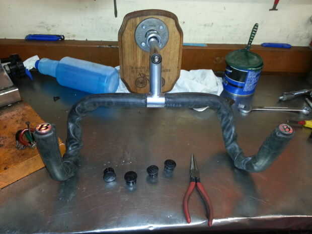 Una vez que todo está en y apretar tapa la barra de extremos. Utilicé mi original barra de extremos que sucedió a trabajar. Era muy cómodo. Usted podría considerar usar un mazo de goma para facilitar las cosas si está muy apretado. Mi amigo fue con Corchos de vino. En lugar de relleno hacia abajo el exceso en las barras que envuelve la barra termina con cinta aislante. Esta opción es más estética que funcional.